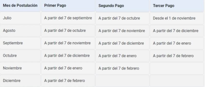 Como señalamos más arriba, el pago de este beneficio se lleva a cabo el 7 de cada mes, por lo que durante el lunes 7 de noviembre el pago se destinará a los postulantes de septiembre, quienes tendrán tres pagos.