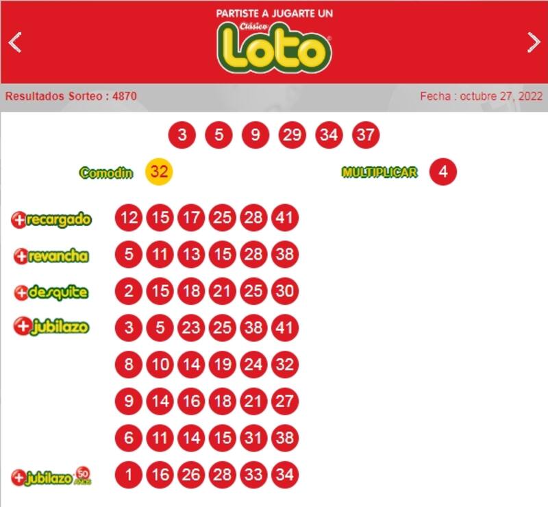 En esta oportunidad, no se registraron ganadores en las siguientes categorías: Loto 6 aciertos, Recargado, Revancha, Desquite ni en el Jubilazo.