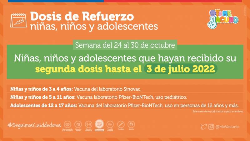 - Personas de 3 años o más que hayan recibido su dosis de refuerzo (tercera dosis) hasta el 29 de mayo de 2022.