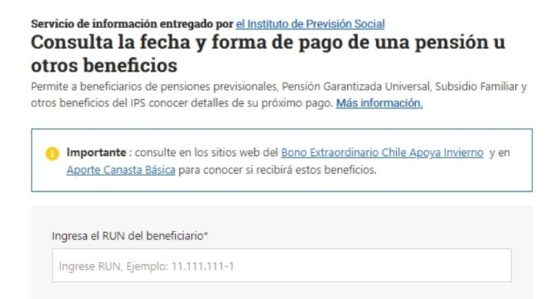 De esta manera tendrás que dirigirte al sitio web que te permitirá conocer la fecha en que se entregará tu aporte y la forma de pago, a continuación digita tu RUT y finalmente presiona donde dice "Consultar".
