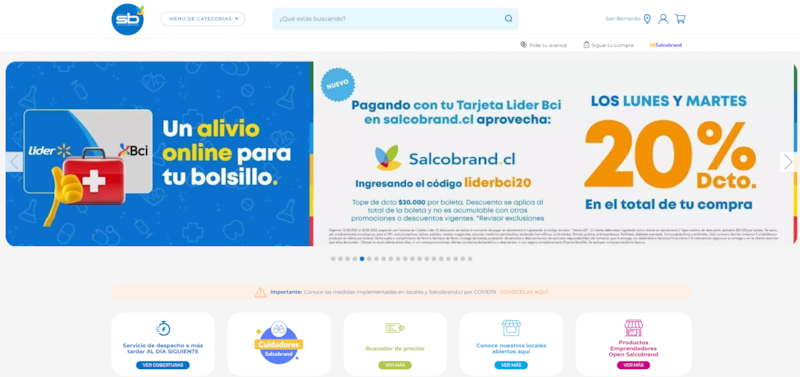 Lunes y martes: 20% de descuento en el total de tu compra pagando con tu Tarjeta Lider BCI en la página web de Salcobrand ingresando el código liderbci20.