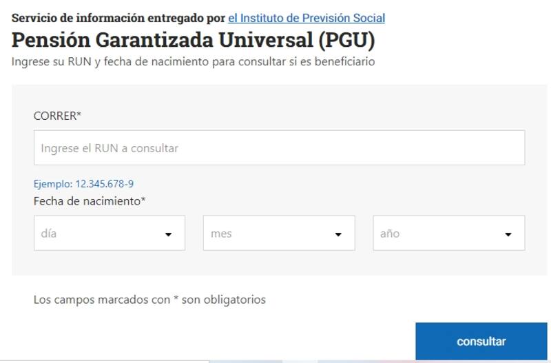 La plataforma indicará de manera automática si el RUT digitado puede recibir los pagos de la Pensión Garantizada Universal (PGU).