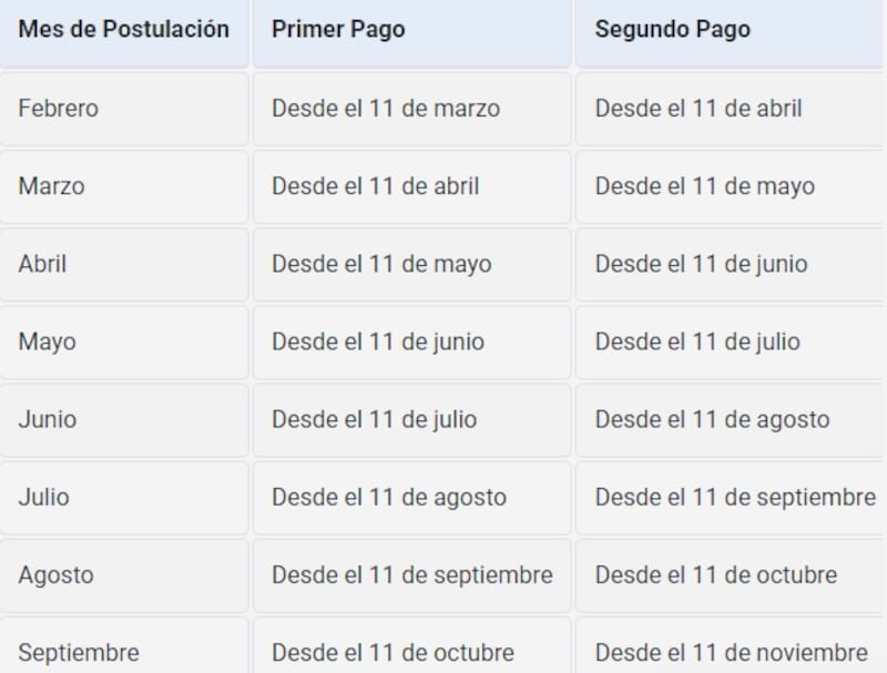 Esto quiere decir que si tu postulación al Subsidio Protege fue en septiembre, en octubre se hará el primer pago, en especifico el martes 11 de este mes.