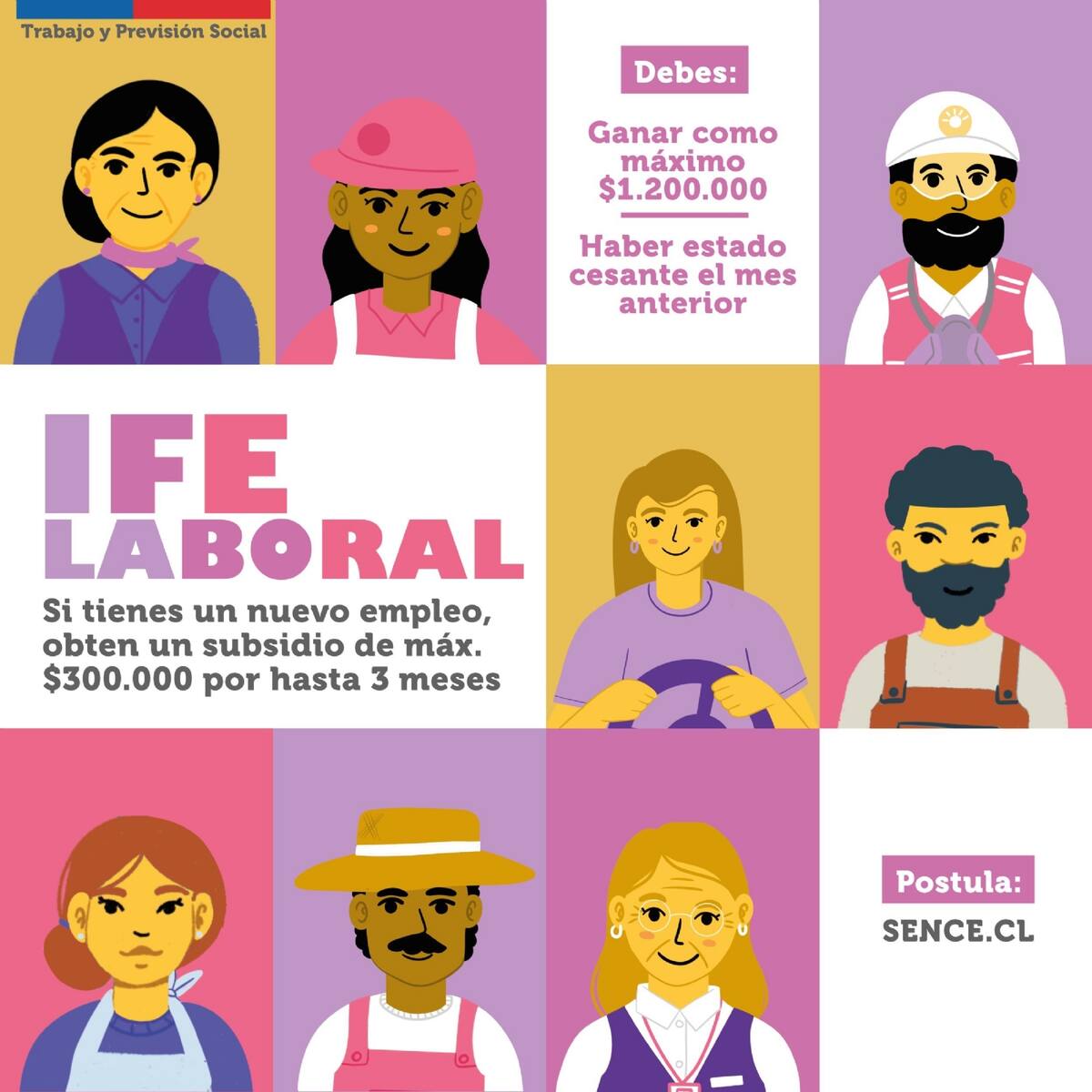 El IFE Laboral entrega entre $100.000 y $300.000 a quienes hayan estado cesantes por un determinado periodo y siempre que su remuneración bruta mensual no exceda de 3 ingresos mínimos mensuales (actualmente $1.200.000).