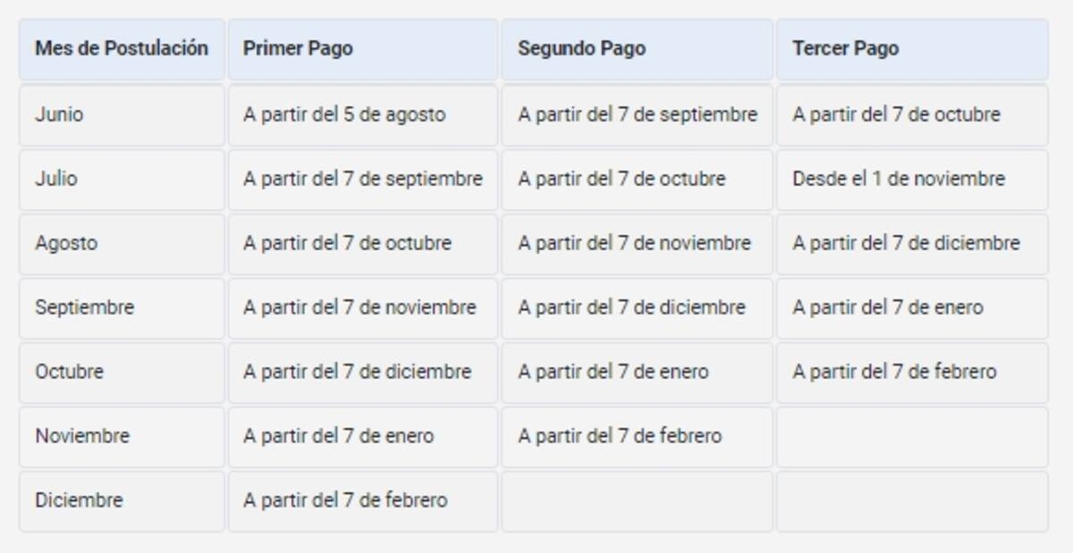 Si postulas en septiembre recibirás tus pagos a partir del: 7 de noviembre.