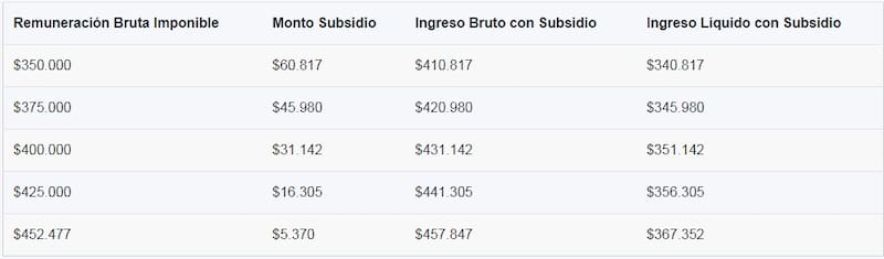 El total que entrega el beneficio dependerá del sueldo que registre el o la postulante al tercer mes previo de hacer la solicitud. De esta forma, los montos que se pueden recibir son los siguientes: