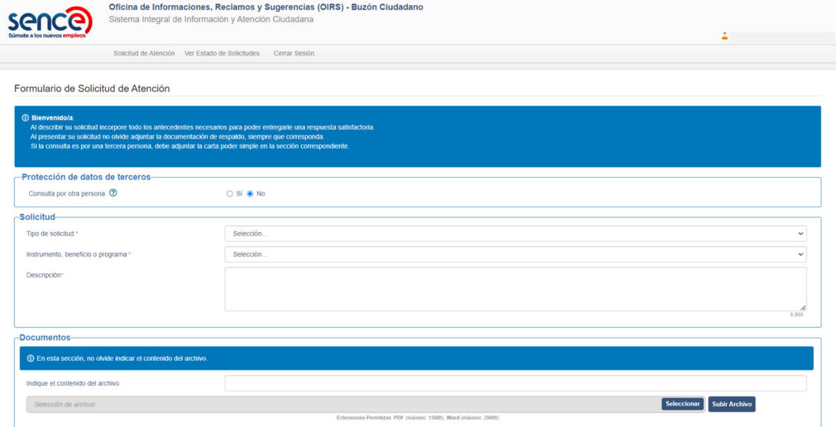 Con esto, ya podrás enviar tu solicitud. Sence tendrá un plazo de 10 días hábiles para responderla, la que te llegará directamente a tu correo electrónico.