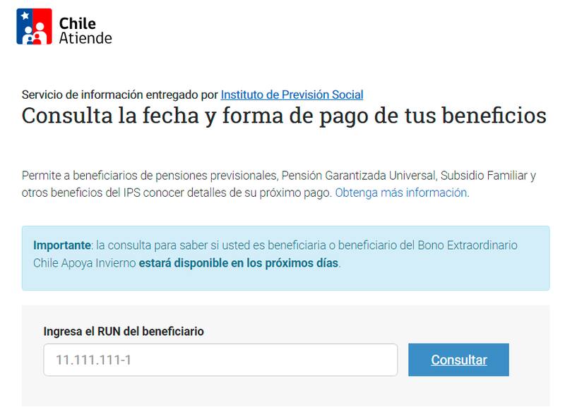 La plataforma indicará todos los beneficios asociados al RUT ingresado, además de la fecha y forma de pago de estos aportes.