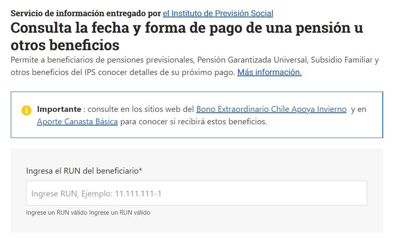 El Instituto de Previsión Social (IPS) permite a los beneficiarios de ciertos aportes consultar con su RUT la fecha en que se pagan las ayudas, como también, poder saber la forma en que se te entregará.