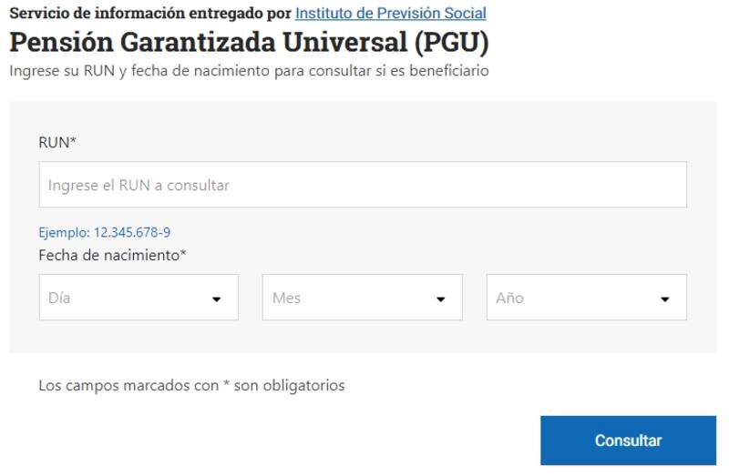 Solo debes ingresar tu RUT y tu fecha de nacimiento, la página te indicará inmediatamente si recibes la PGU. En caso de no cumplir con las características, la plataforma te indicará cuáles son los requisitos que te faltan cumplir.