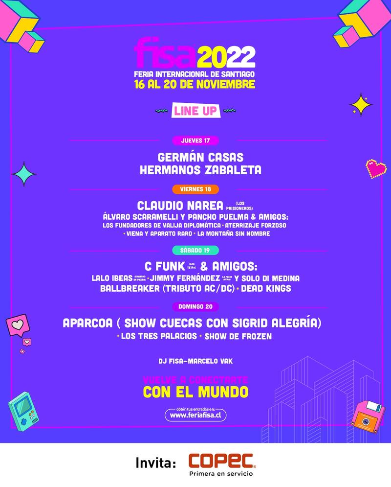 Además de las novedades que tendrá la feria, también contará con artistas musicales, donde destacan nombres como Claudio Narea, C Funk, Álvaro Scaramelli y Pancho Puelma, Lalo Ibeas y un show de cuecas con Sigrid Alegría, entre otros.