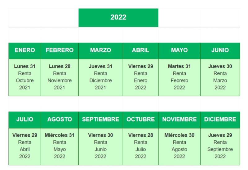 Puedes revisar el calendario de pagos 2022 a continuación: