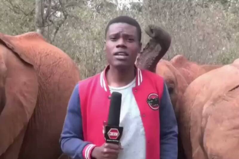 Un periodista en Kenia vivió un chistoso momento mientras hacía su despacho. Esto porque mientras se encontraba frente a las cámaras, un grupo de elefantes le jugaron una "broma".