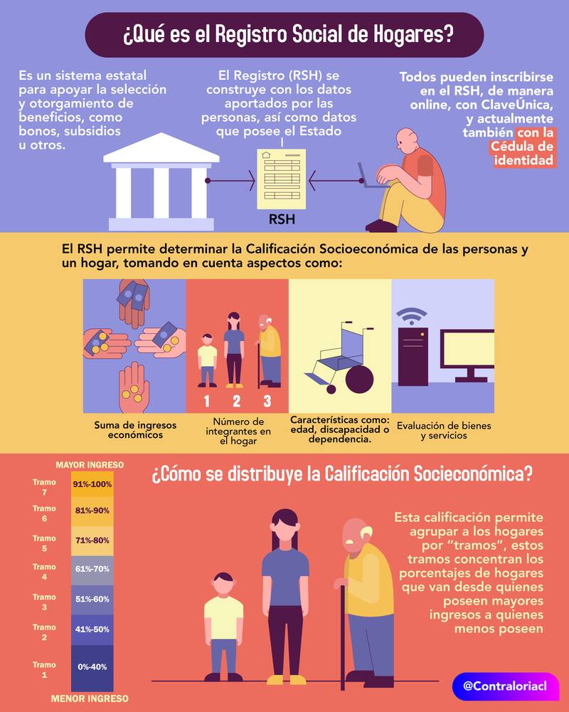 El Registro Social de Hogares (RSH) ayuda al Estado en los procesos de selección de diversos bonos, subsidios y programas sociales, para que se le entreguen a las personas que más lo necesitan, según su nivel socioeconómico.