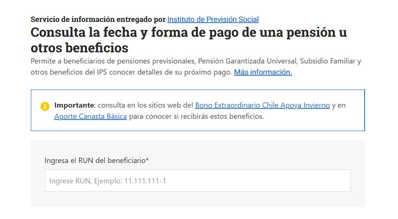 Si quieres conocer si recibes el aporte, este sitio te entregará la fecha y forma de pago en la que recibirás el aporte. Solo tienes que ingresar tu RUT en la plataforma de consulta de Chile Atiende.