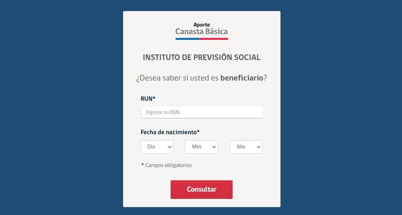 Como este beneficio se otorga de manera automática, es probable que desconozcas si eres beneficiario, para ello se habilitó la página web Aporte Canasta Básica, en la cual digitando tu RUT y fecha de nacimiento podrás saber si te fue otorgado el beneficio.