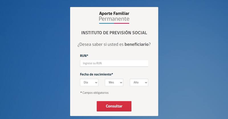 Para saber si fuiste beneficiario del Bono Marzo, deberás dirigirte al sitio web del Aporte Familiar Permanente, donde tendrás que digitar tu RUT y fecha de nacimiento. Para finalizar el proceso presiona en "Consultar".