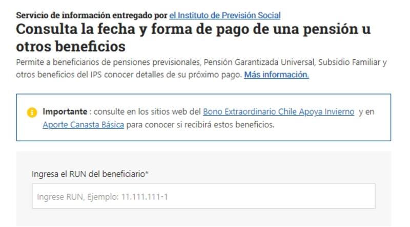 Quienes deseen conocer la fecha y forma de pago de sus beneficios estatales, ChileAtiende, en conjunto con el Insituto de Previsión Social, habilitaron una plataforma para que puedes consultar los detalles.