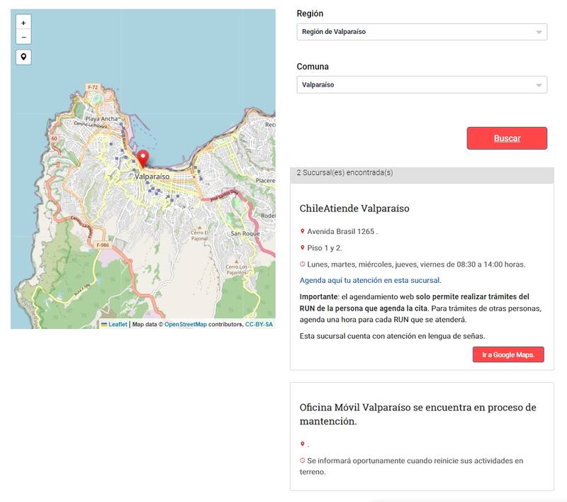 Si necesitas realizar algún trámite en Chile Atiende, puedes encontrar la oficina más cercana a ti ingresando al sitio de Chile Atiende en Sucursales. Allí, podrás filtrar por región y comuna, o revisar en el mapa que aparece al costado.