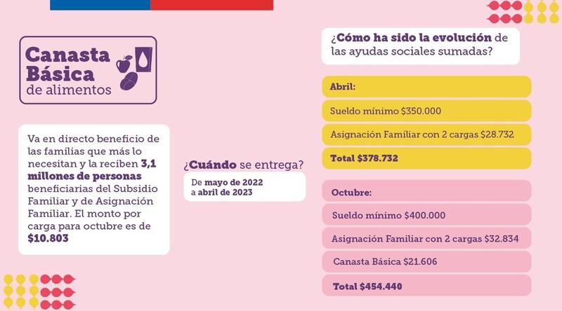 En noviembre se realizan nuevos pagos del Bono Canasta Básica, aporte monetario que se entregará mensualmente hasta abril de 2023, para ayudar a las personas con el alza de precios de los productos que componen la Canasta Básica de Alimentos.