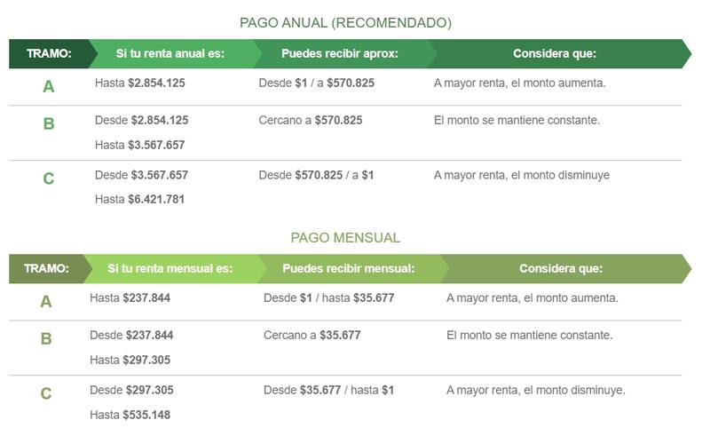 Si es anual, el valor máximo será de $570.825 en un pago único. De ser mensual, sería de $35.677.
