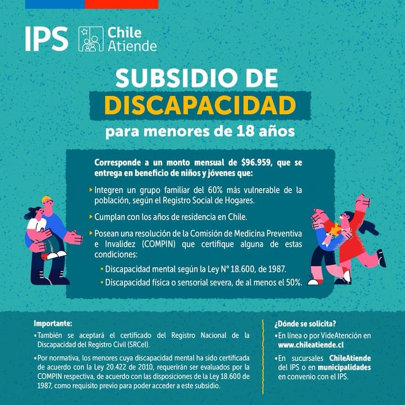 El Subsidio de Discapacidad entrega un aporte monetario mensual a menores de 18 años de edad que estén en situación de discapacidad mental, física o sensorial severa, y que sean de escasos recursos.