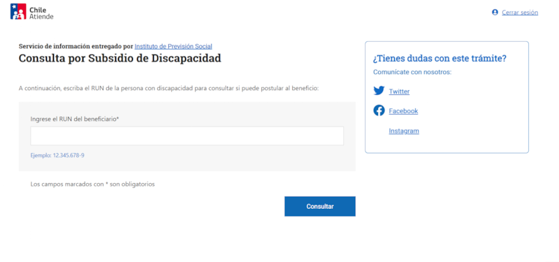 Ingresa a la página web del Subsidio de Discapacidad de Chile Atiende y el IPS, escribiendo el RUT de la persona solicitante.