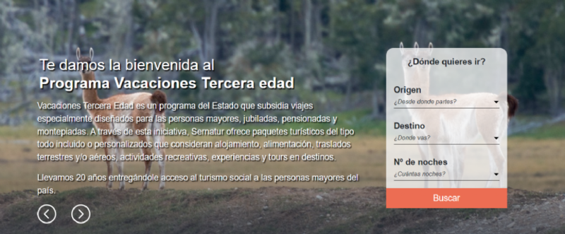Esta modalidad está disponible en el sitio oficial de Vacaciones Tercera Edad en la sección de "Vacaciones".
