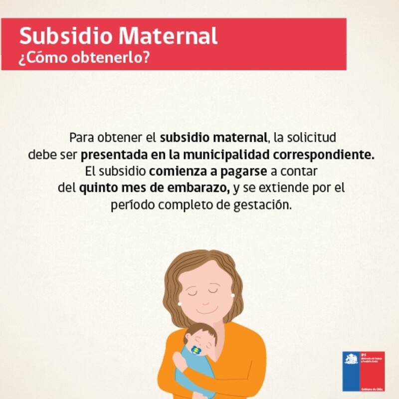 Dentro de los beneficios que se entregan a las madres está la Asignación Maternal, la cual consiste en un aporte monetario dirigido a trabajadoras embarazadas o a trabajadores cuyas cónyuges sean causantes de la Asignación Familiar.