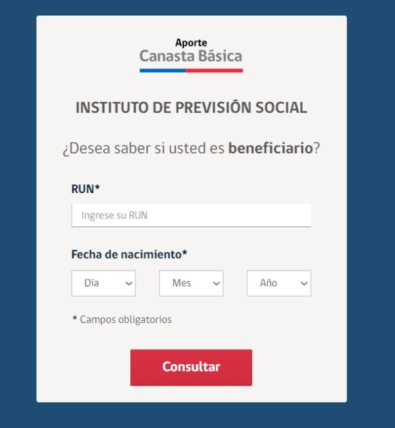Si quieres saber si eres beneficiario del Bono Canasta Básica, la fecha de pago, montos a recibir y dónde cobrarlo en caso de recibirlo de forma presencial, puedes revisar solo con tu RUT y fecha de nacimiento a través del sitio web dispuesto por el IPS.