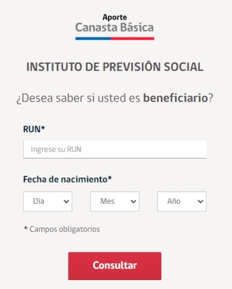 Quienes deseen conocer si podrán recibir el monto de diciembre, pueden ingresar al sitio oficial del Aporte Canasta Básica. Una vez dentro deberán digitar su RUT y fecha de nacimiento.