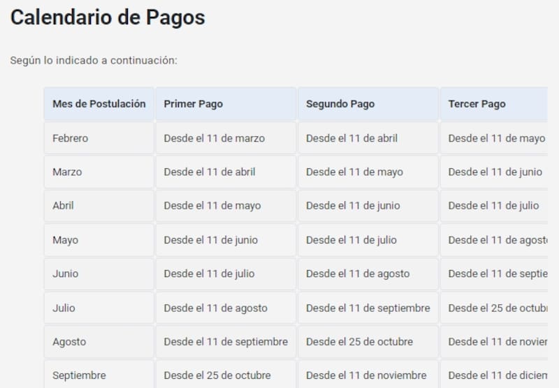 Acá te dejamos el calendario de pagos: