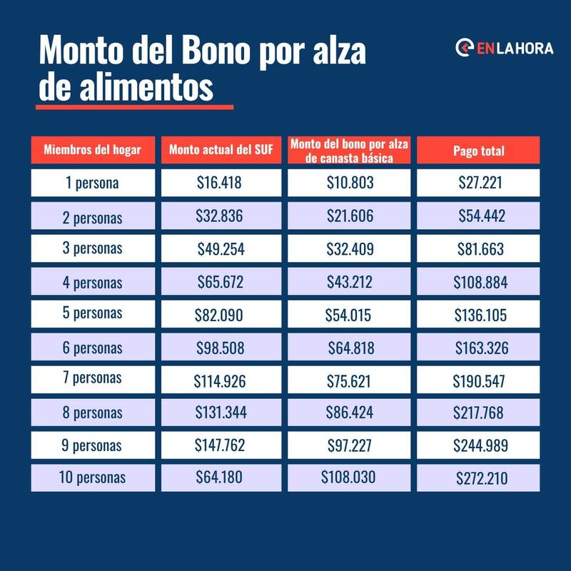 Será posible recibir el Aporte Canasta Básica de Alimentos hasta abril de 2023, con montos que varían dependiendo de la cantidad de cargas familiares que posea la persona beneficiaria.