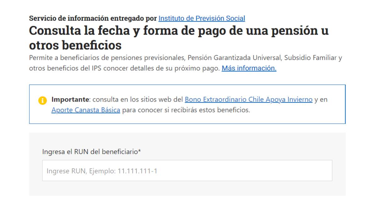 Puedes revisar con tu RUT si recibes este aporte, así como su fecha de pago y modalidad de este a través de la plataforma web dispuesta por Chile Atiende.