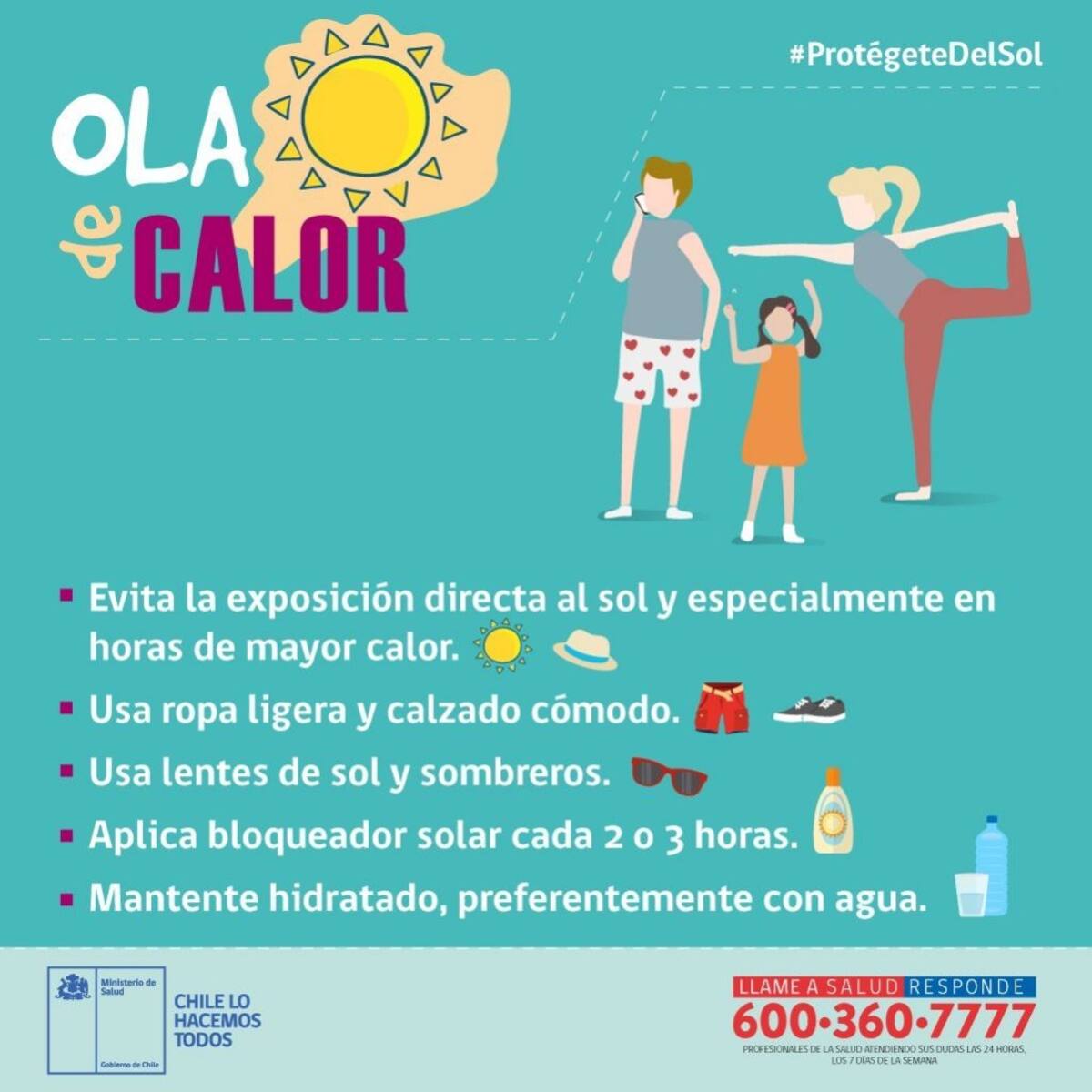 Deberás intentar en lo posible mantenerte en lugares frescos y bien ventilados, como las sombras de las calles. Evita salir entre las 11:00 y 16:00 a la calle, para no tener exposición directa con el sol. Recuerda también aplicar bloqueador de factor mayor o igual a 30.