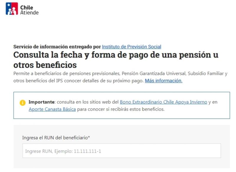 Por esta razón, para poder conocer tu fecha de pago debes ingresar al sitio web de Chile Atiende, escribir tu RUT y pulsar en "Consultar". Allí se te informará sobre la forma de pago y el día que recibirás este beneficio.