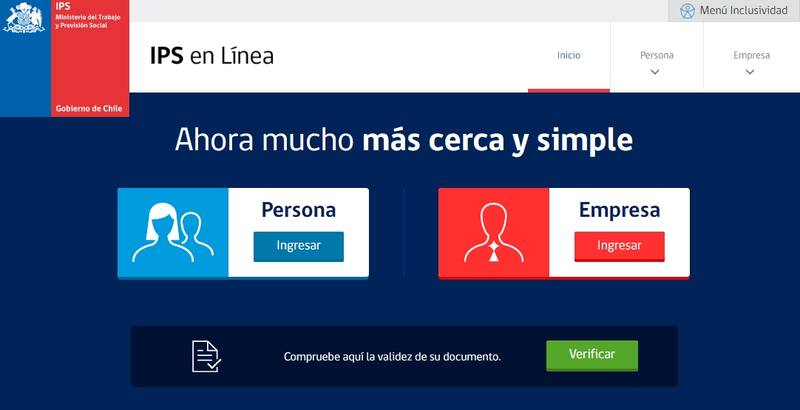 Para poder postular a la Pensión Básica Solidaria de Invalidez debes ingresar al sitio del IPS en Línea, pulsar en "Personas" y digitar tu RUT.