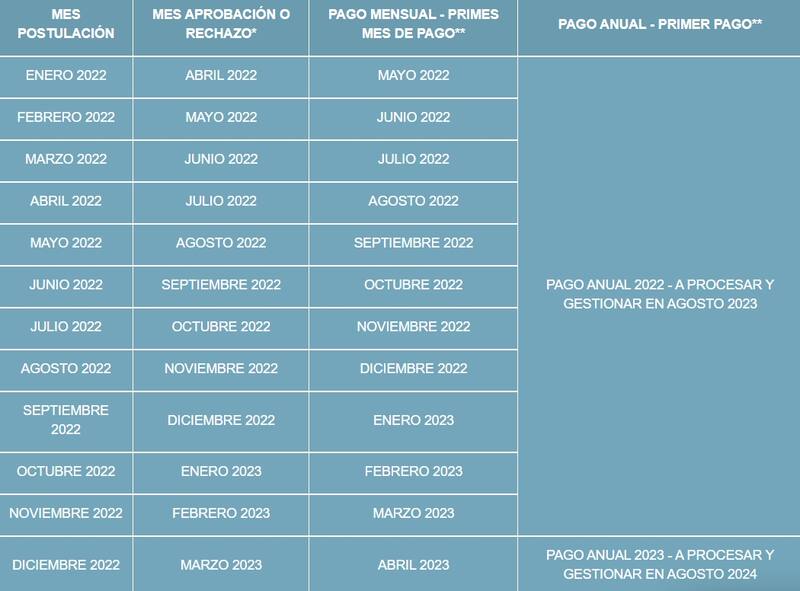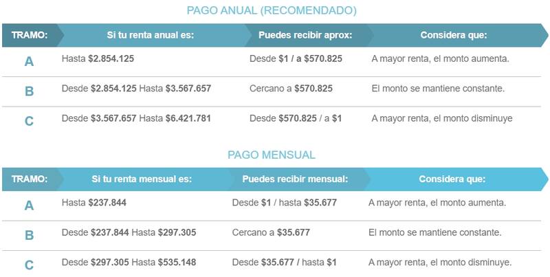 Este beneficio se paga de manera anual o mensual, aunque esto dependerá de tus ingresos, como puedes apreciar a continuación: