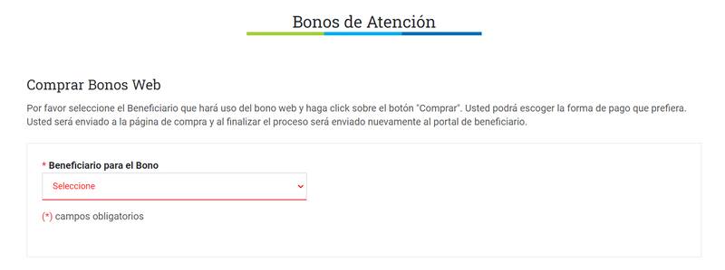 Elige quién es el beneficiario y luego pincha donde dice "comprar bono prestaciones de salud".