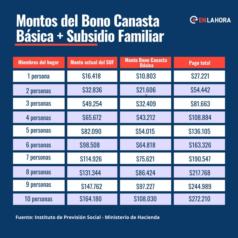 Revisa a continuación una tabla con los montos de diciembre del Bono Canasta Básica sumado al SUF: