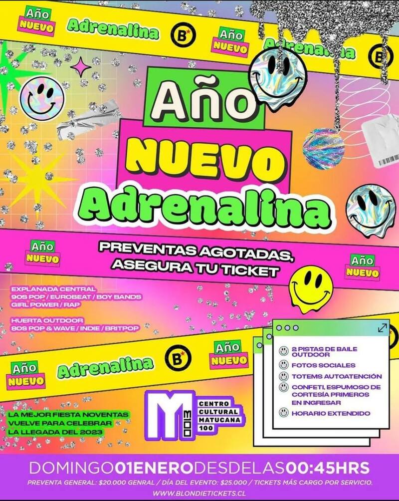 Si no eres de escuchar reggaetón y cumbia, pero a la vez te gustan los éxitos de los 80' y 90', entonces el evento perfecto para disfrutar este 2023 es Adrenalina, una celebración organizada cada 31 de diciembre por Blondie.