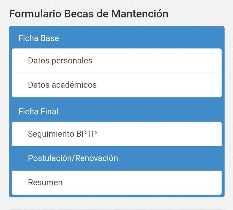 Una vez dentro de la página, deberás rellenar tus datos personales y datos académicos y presionar en "siguiente". A continuación te dirigirá a la casilla de postulación y renovación, donde te indicará los beneficios a los que puedes acceder.