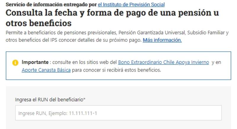 La plataforma indicará todos los beneficios asociados al RUT ingresado, además de la fecha y forma de pago de estos aportes.