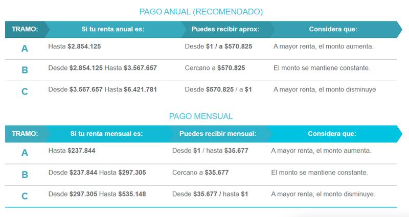 Monto para el Grupo A: si tu renta anual es hasta los $2.854.125, puedes recibir desde 1 a 570.825.