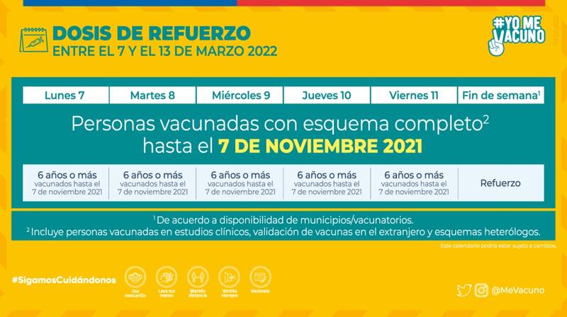Esta semana se inoculará con la tercera dosis a los todas las personas desde los 6 años o más. En esta ocasión, serán considerados los menores de edad que se hayan vacunado hasta el 7 de noviembre de 2021.