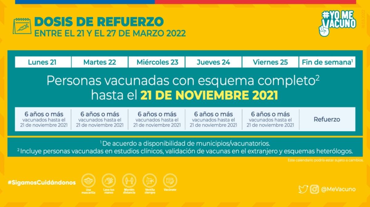 - Cuarta dosis para personas inmunocomprometidas que hayan recibido su dosis de refuerzo hasta el 21 de noviembre de 2021.