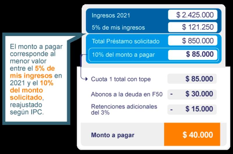 Además, de acuerdo a lo establecido en las leyes N°21.242 y N°21.252, desde septiembre de 2021 se comenzó a hacer una retención adicional del 3% en las boletas de honorarios, Pago Provisional Mensual (PPM) o renta tributable de quienes solicitaron el beneficio del Estado, como una forma de apoyo al reintegro del préstamo. También se podía hacer un prepago.