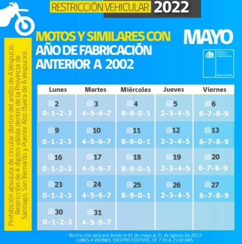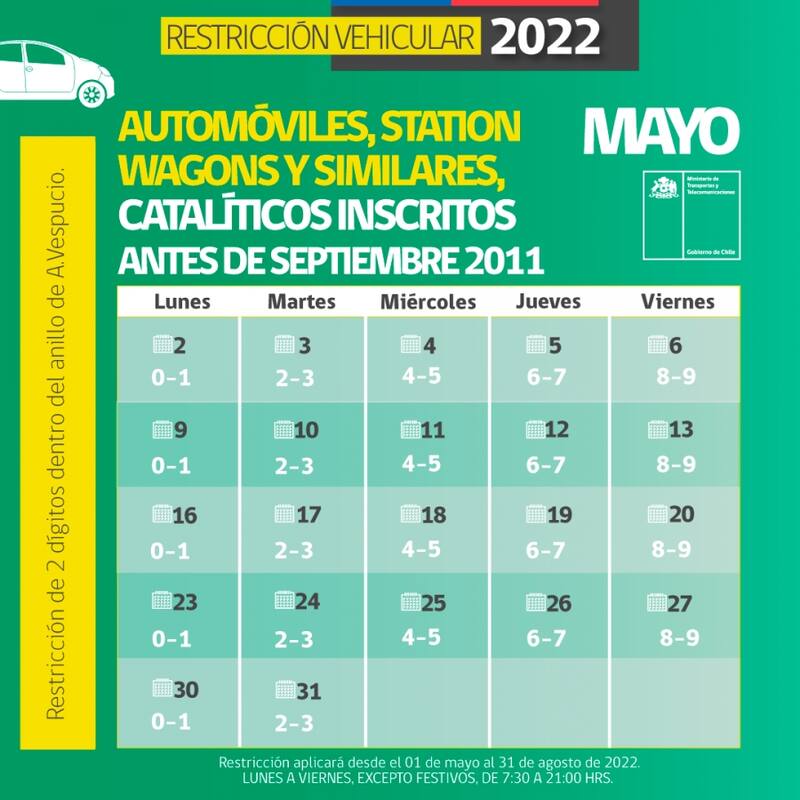 A partir de la próxima semana comienza la restricción vehícular en la Región Metropolitana, la que se extenderá hasta el 31 de agosto, según información del Ministerio de Transporte y Telecomunicaciones. Esta medida busca gestionar episodios críticos de contaminación ambiental en la capital.