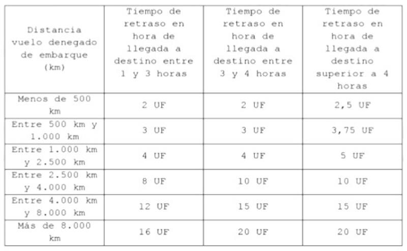 En estas situaciones, los derechos que tienes son los mismos que en el caso anterior, pero a diferencia de una cancelación o retraso (y si el vuelo sale tres horas después de lo previsto), estarás en facultad de pedir una compensación económica de acuerdo a la siguiente tabla: