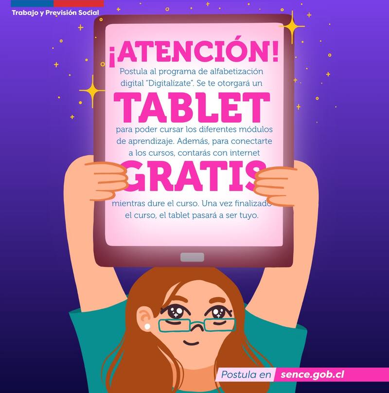 Esta iniciativa consiste en cursos de capacitación sin costo, orientados a enseñar habilidades digitales para mejorar la empleabilidad de la población adulta en Chile. Además cada participante recibirá una tablet con conexión a internet y la aplicación del plan formativo a realizar.